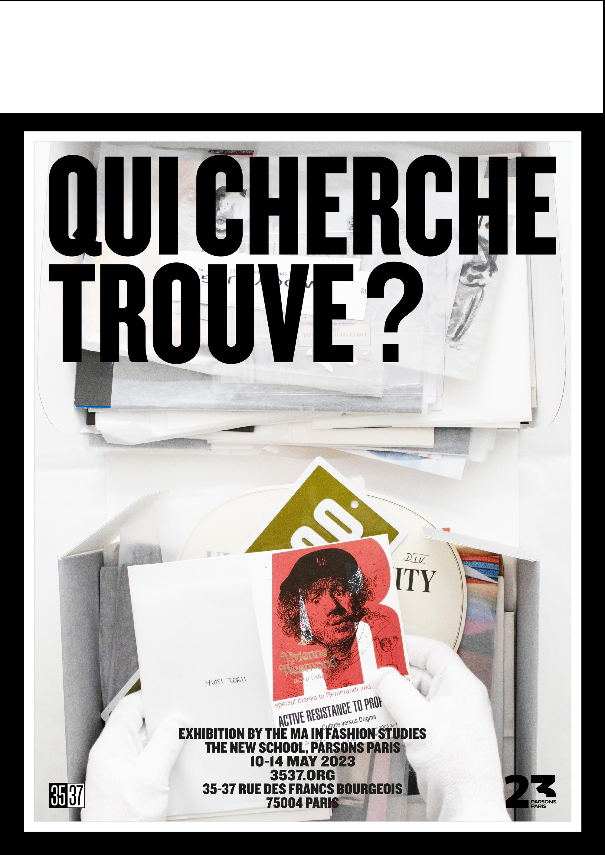 At Paris’ 3537 gallery in Spring 2023, the MA Fashion Studies presented their final projects in the exhibition ‘Qui Cherche Trouve’. Inspired by the titular proverb, the exhibition at large showed various modes of questioning what it means to study fashion; how fashion evolves in times of social upheaval, and why this questioning is urgent.